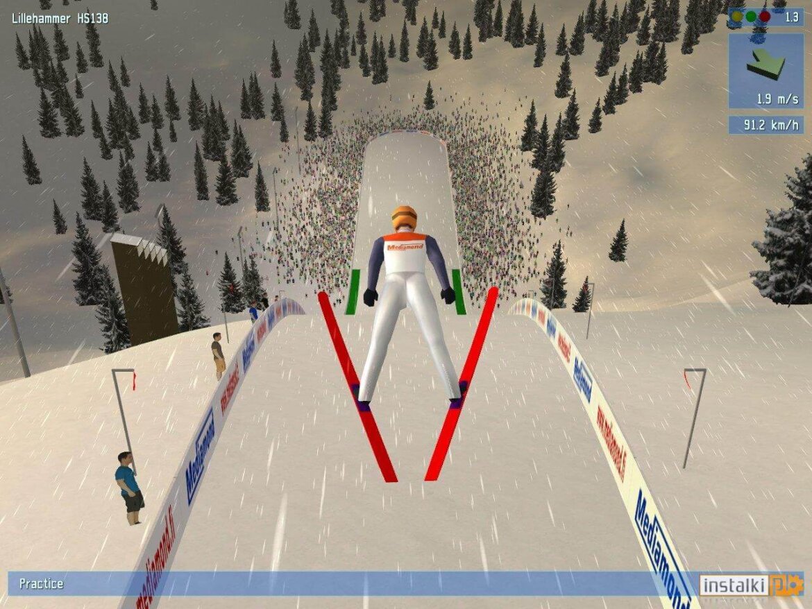 • Gra oferuje realistyczne animacje rozbiegu, skoku i lądowania. Każdy skok wymaga dobrego rozplanowania trasy i umiejętności pilotażu nartami po wyjściu ze stoku skoczni, aby uzyskać jak największą odległość i noty za styl.